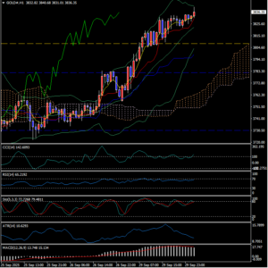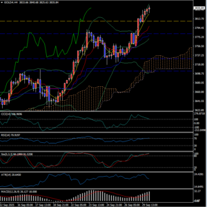 日足チャートでは、9月に入ってから力強い上昇トレンドが続き、3835ドルのレジスタンスライン(赤点線)に到達しました🌟