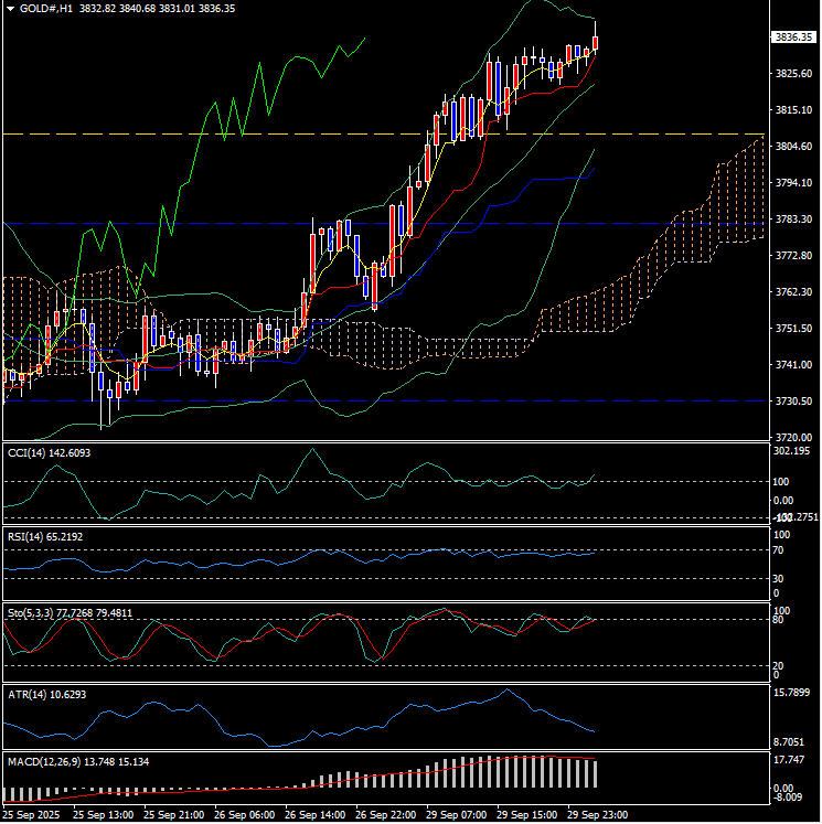 alt:ゴールド 相場分析 9月30日 1時間足チャート