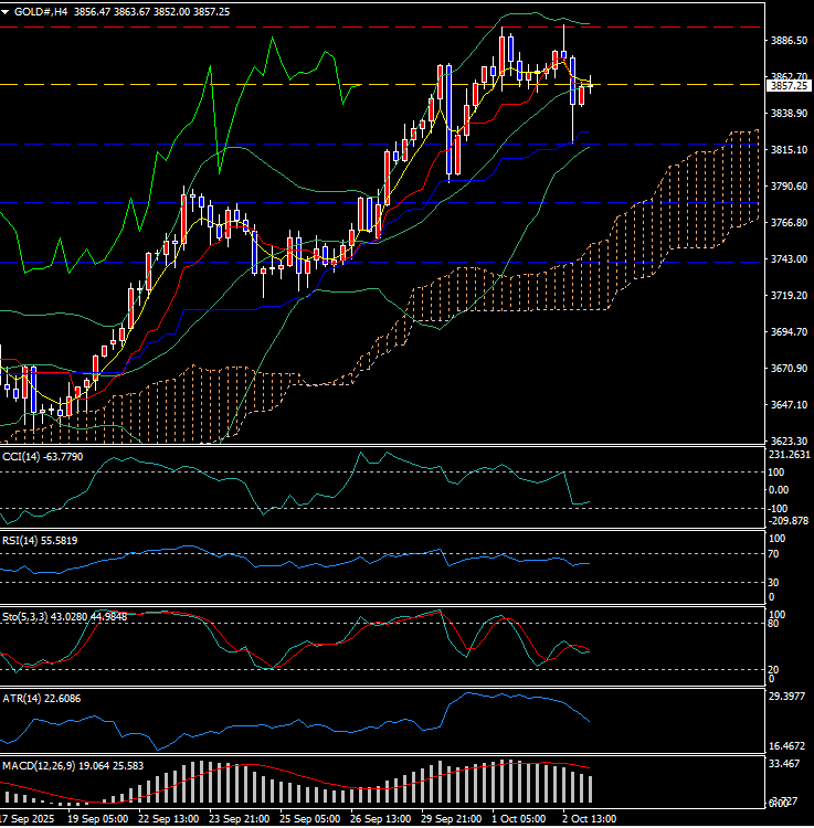 alt:ゴールド 相場分析 10月3日 4時間足チャート