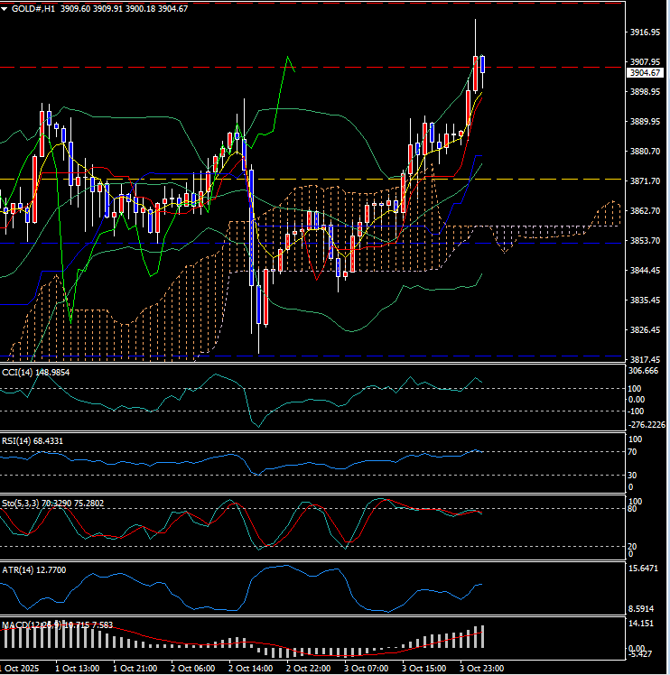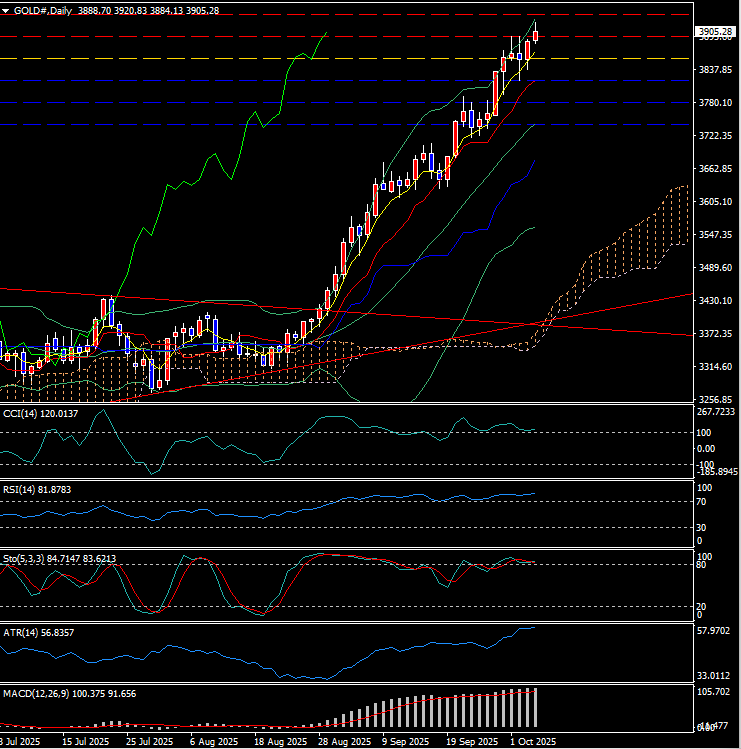 直近では3900ドル台を突破し、高値圏での攻防が続いています。テクニカル指標から今後の方向性とエントリーポイント候補を一緒に確認していきましょう🌸