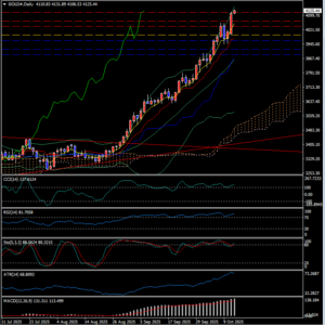 特に10月に入ってからの上昇スピードは加速しており、ゴールド 相場分析 10月14日時点でも強いトレンドが維持されていますが、テクニカル指標ではやや過熱感も見られます。