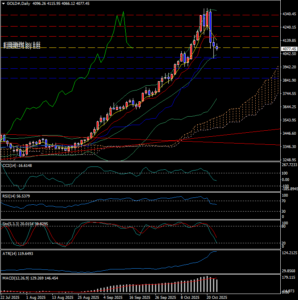 日足分析:高値圏からの調整、節目4075ドル付近で下げ止まりの兆し