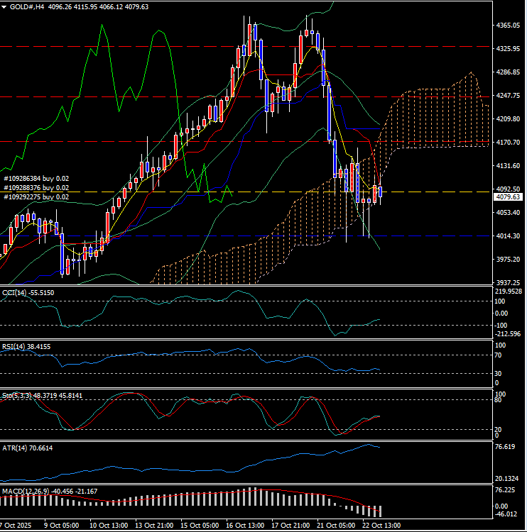 日足分析:高値圏からの調整、節目4075ドル付近で下げ止まりの兆し