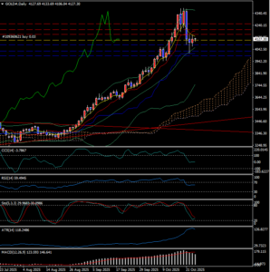 10月初旬から続いた力強い上昇トレンドは一服し、現在は4120ドル前後での押し目形成が進んでいます。