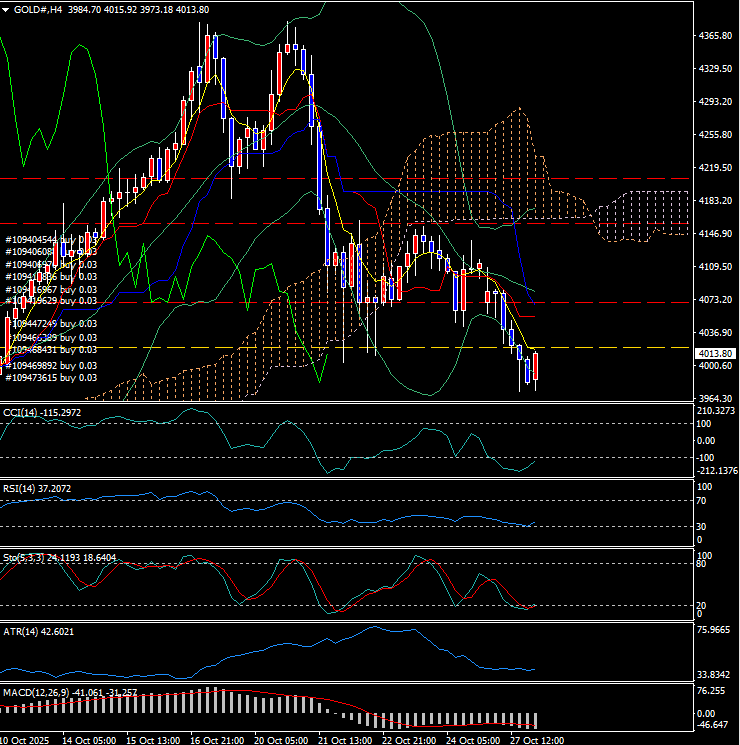 🖼️画像alt(4時間足):ゴールド 相場分析 10月28日 4時間足チャート