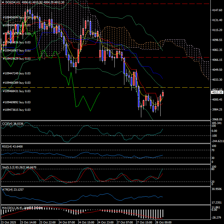 🖼️画像alt(1時間足):ゴールド 相場分析 10月28日 1時間足チャート